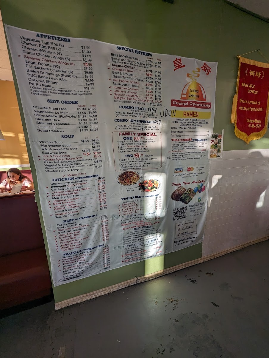 King Wok Express offers a delicious array of dishes that promise to satisfy a wide range of cravings. The Combo Fried Rice is a flavorful classic, combining perfectly cooked rice with a savory mix of vegetables and meat, making it a standout choice for any meal. For those who prefer something a bit more indulgent, the Sesame Chicken is a crispy, tender delight, coated in a sweet and slightly tangy sesame sauce. The restaurant also offers a Salad Bar that provides a refreshing variety of options for lighter fare, featuring fresh vegetables and assorted toppings. The Combo Lo Mein is another popular dish, with a balance of noodles, vegetables, and protein, all tossed together in a rich, savory sauce that complements the dish beautifully. For a sweet treat to round off the meal, the Sesame Balls 8 offer a satisfying dessert option, with their crisp exterior and soft, sweet filling. The diverse menu at King Wok Express ensures there is something for everyone, whether you're in the mood for comfort food or something a bit more adventurous.